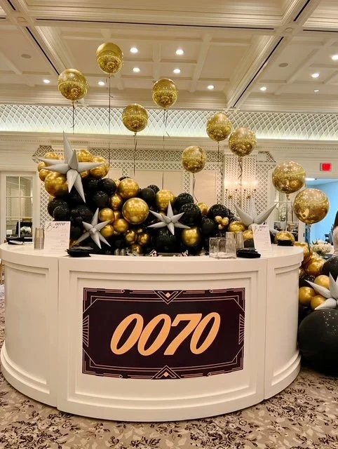 From the moment guests walked into the Capital Hotel, they were transported into a glamorous 007- themed evening filled with black and gold elegance. The room sparkled with stunning balloon installations, candlelit tables and a bar wrapped in our very own “0070” Bond-inspired logo - the perfect nod to the milestone 70th birthday.